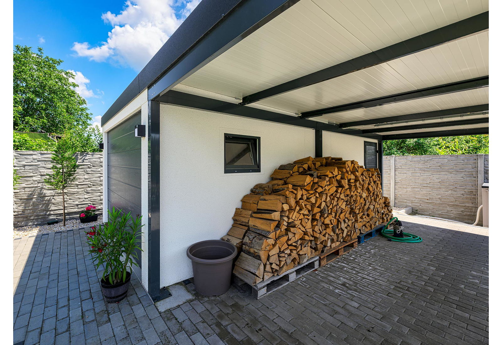 GARDEON® Garáž s dverami Hörmann, oknom a pravým prístreškom