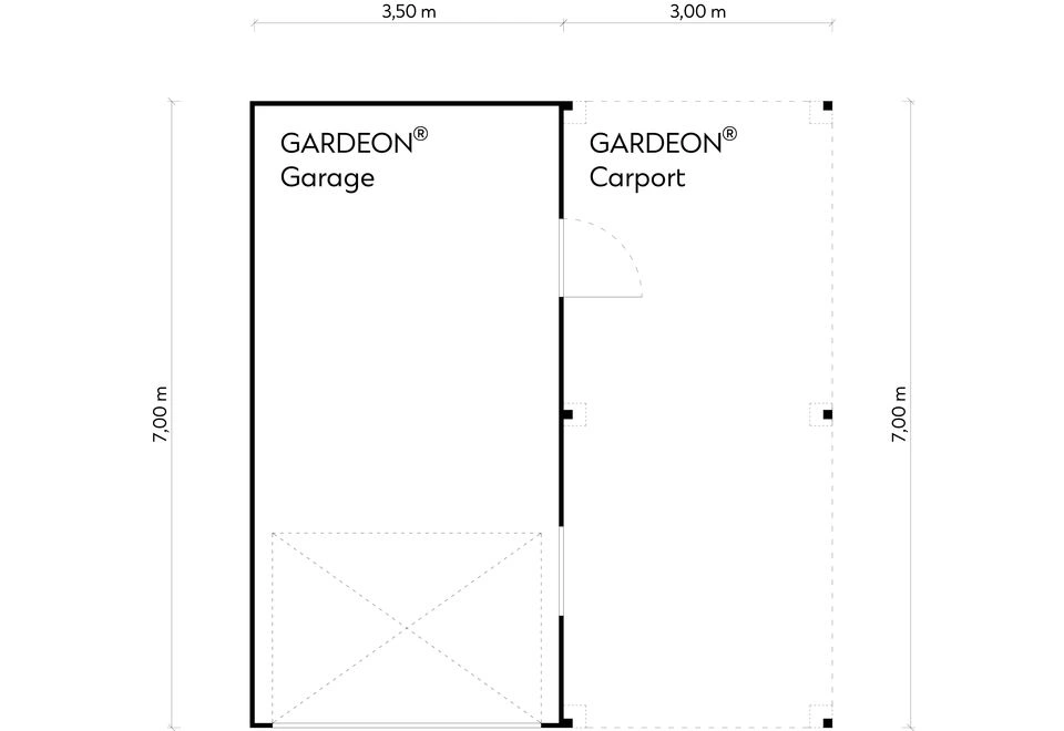GARDEON® Garáž 3,5 m x 7 m s dverami Hörmann, oknom a pravým prístreškom | Gardeon