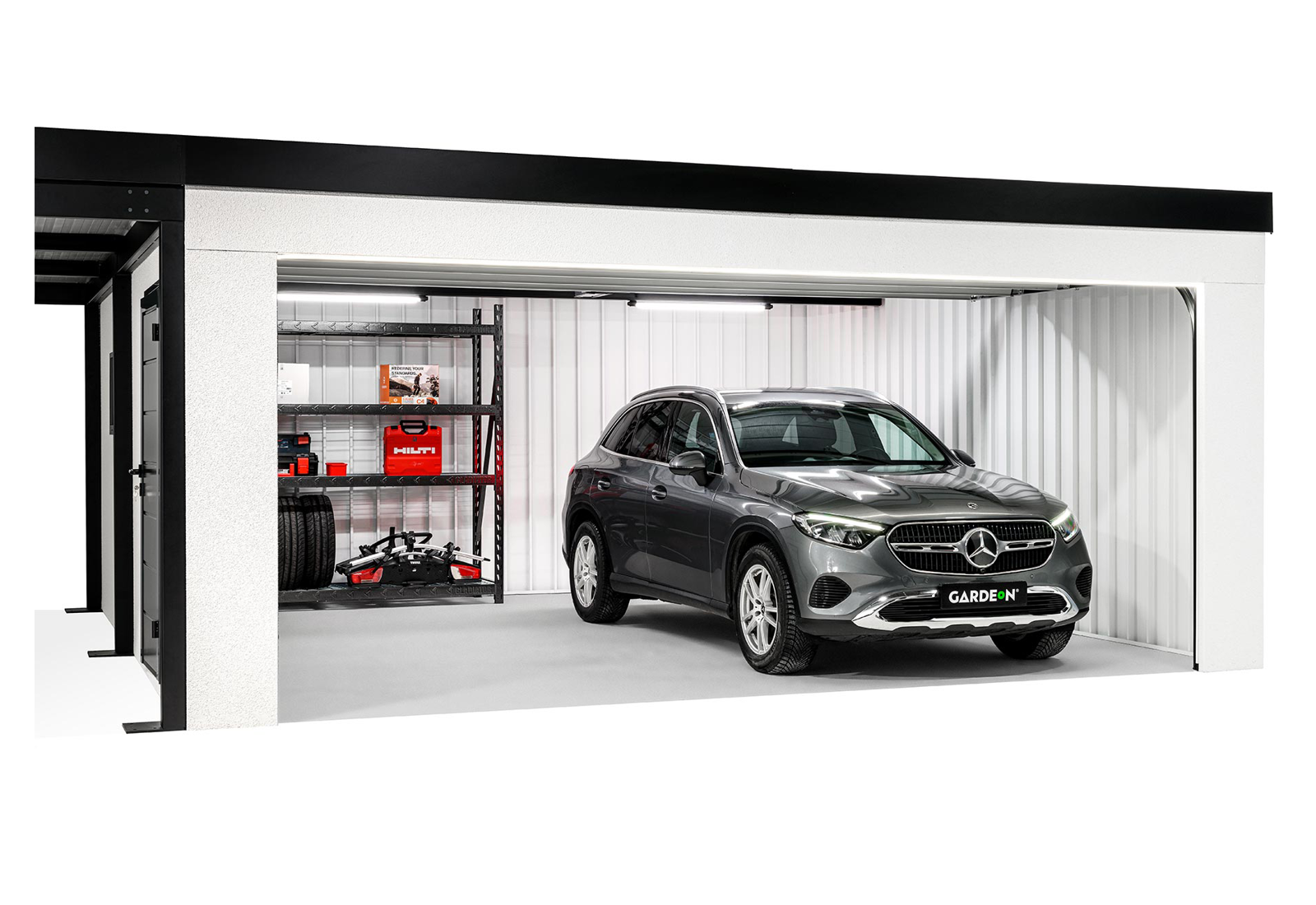 Objavte inováciu v stavebníctve – montované garáže GARDEON® s hotovou dizajnovou omietkou od švajčiarskej značky KABE. Celoročná fasáda je samočistiaca a s ľahkosťou odoláva vode, vysokým teplotám aj všetkým rozmarom počasia. Vďaka našej unikátnej technológii má oceľová stena hrúbku iba 5 cm a oproti 20-centimetrovej klasickej murovanej stene tak významne ušetríte priestor na pozemku aj vo vnútri garáže.