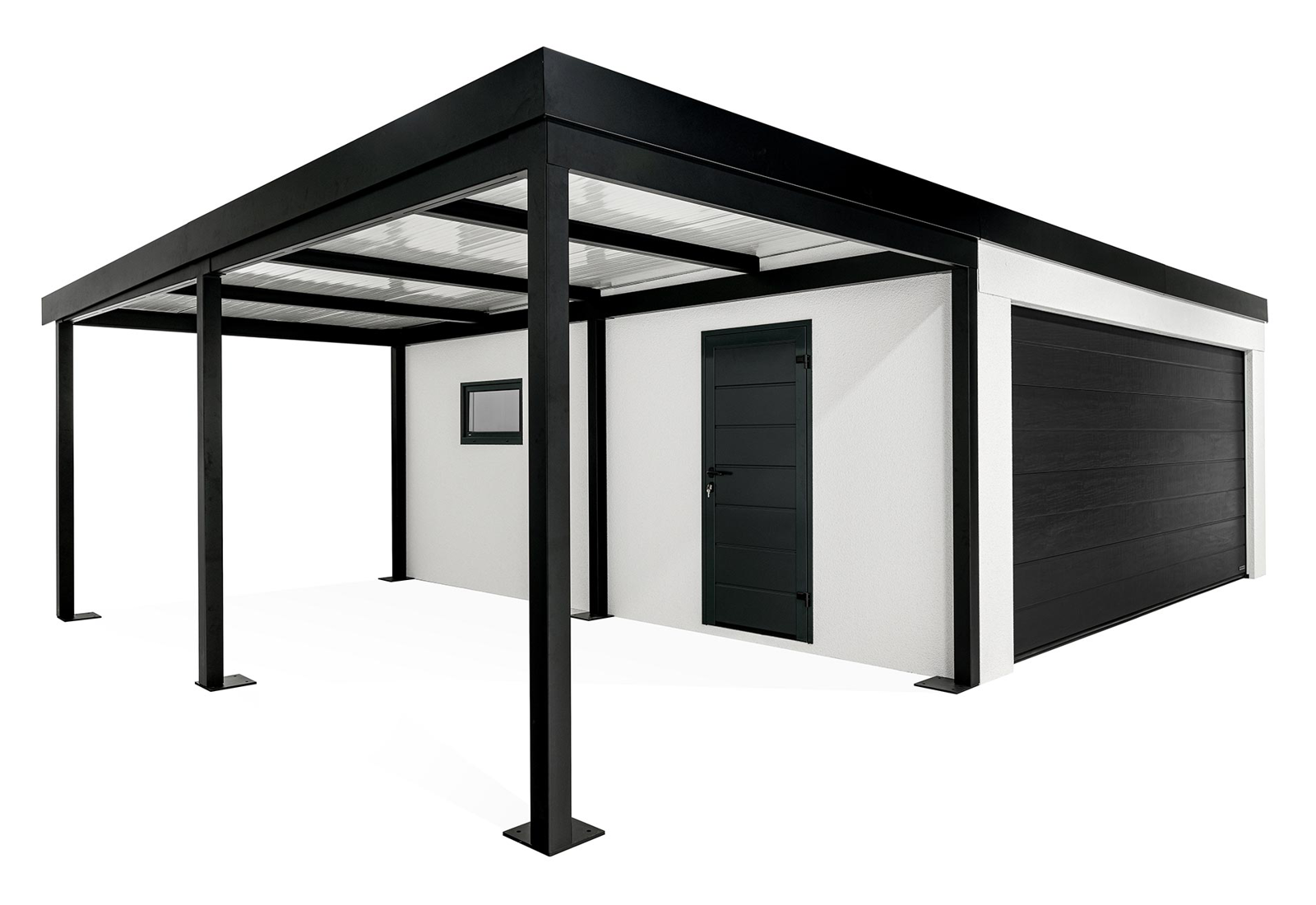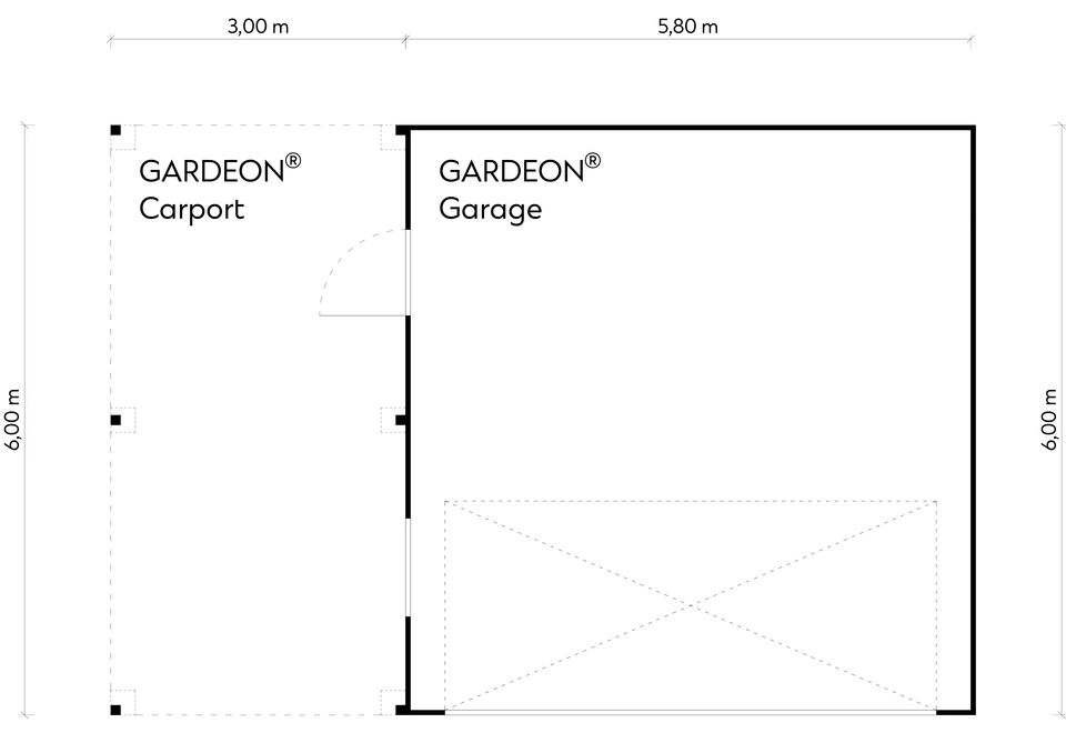 GARDEON® Garáž 5,8 m x 6 m s dverami Hörmann, oknom a ľavým prístreškom | Gardeon