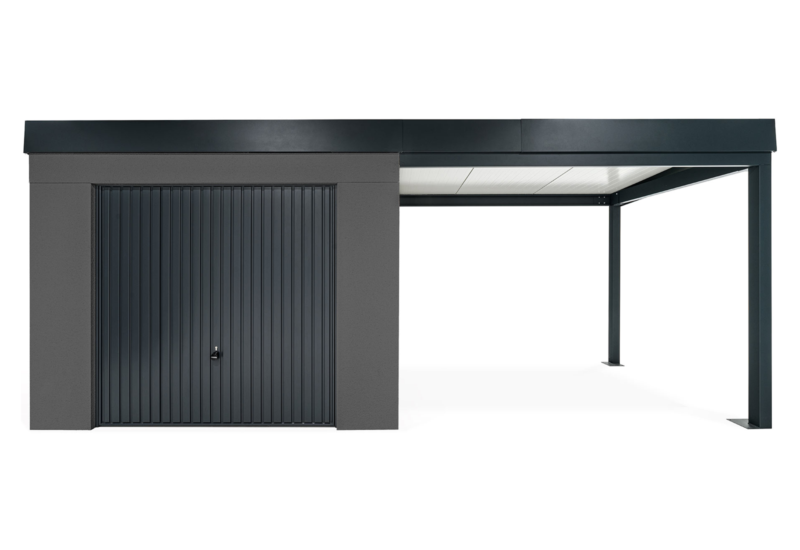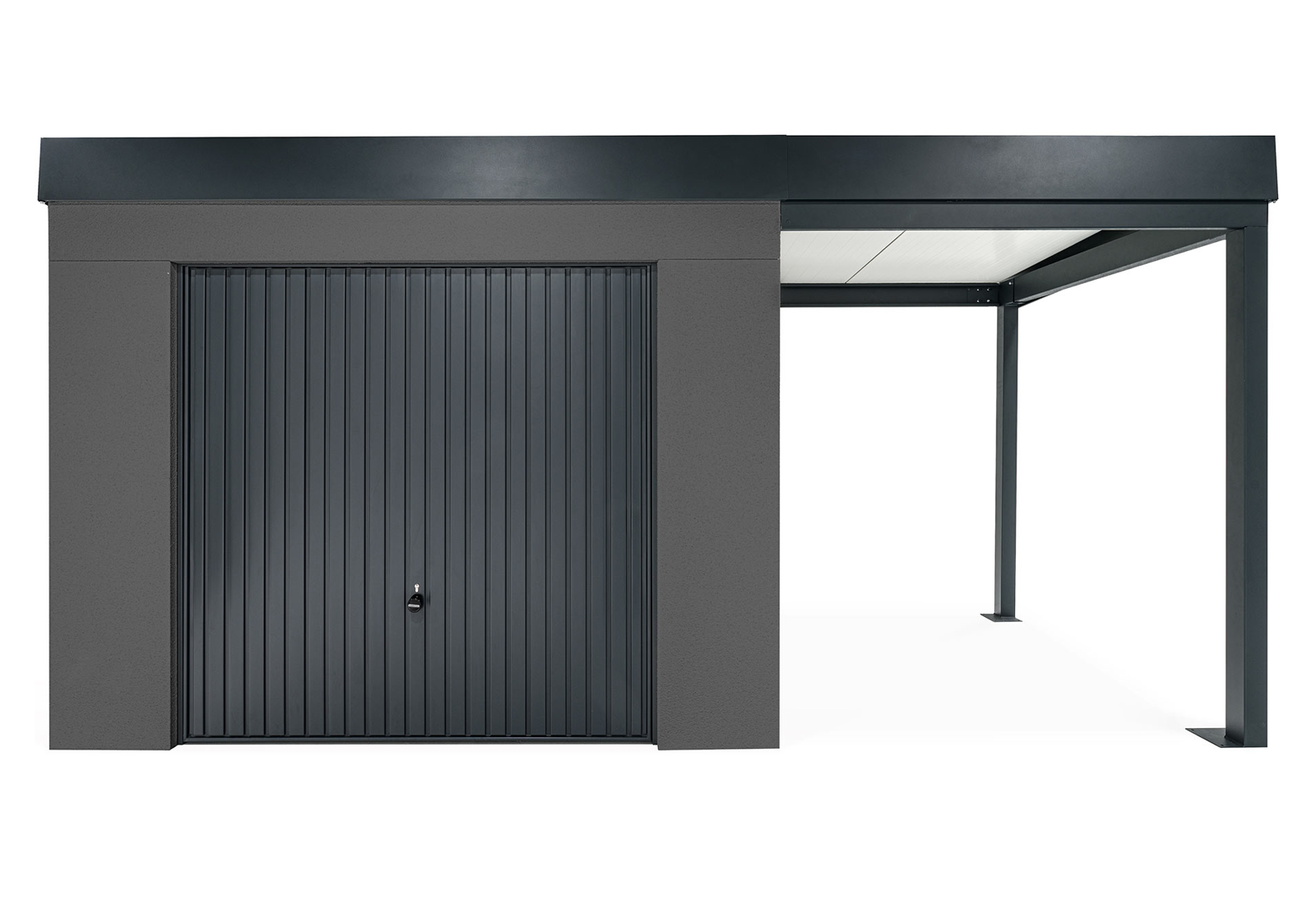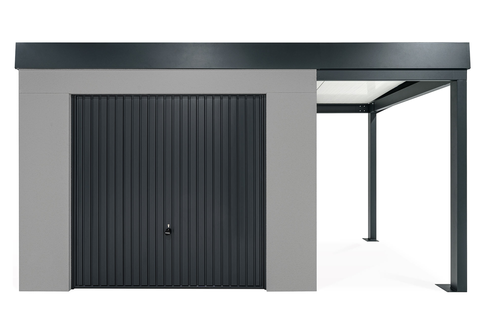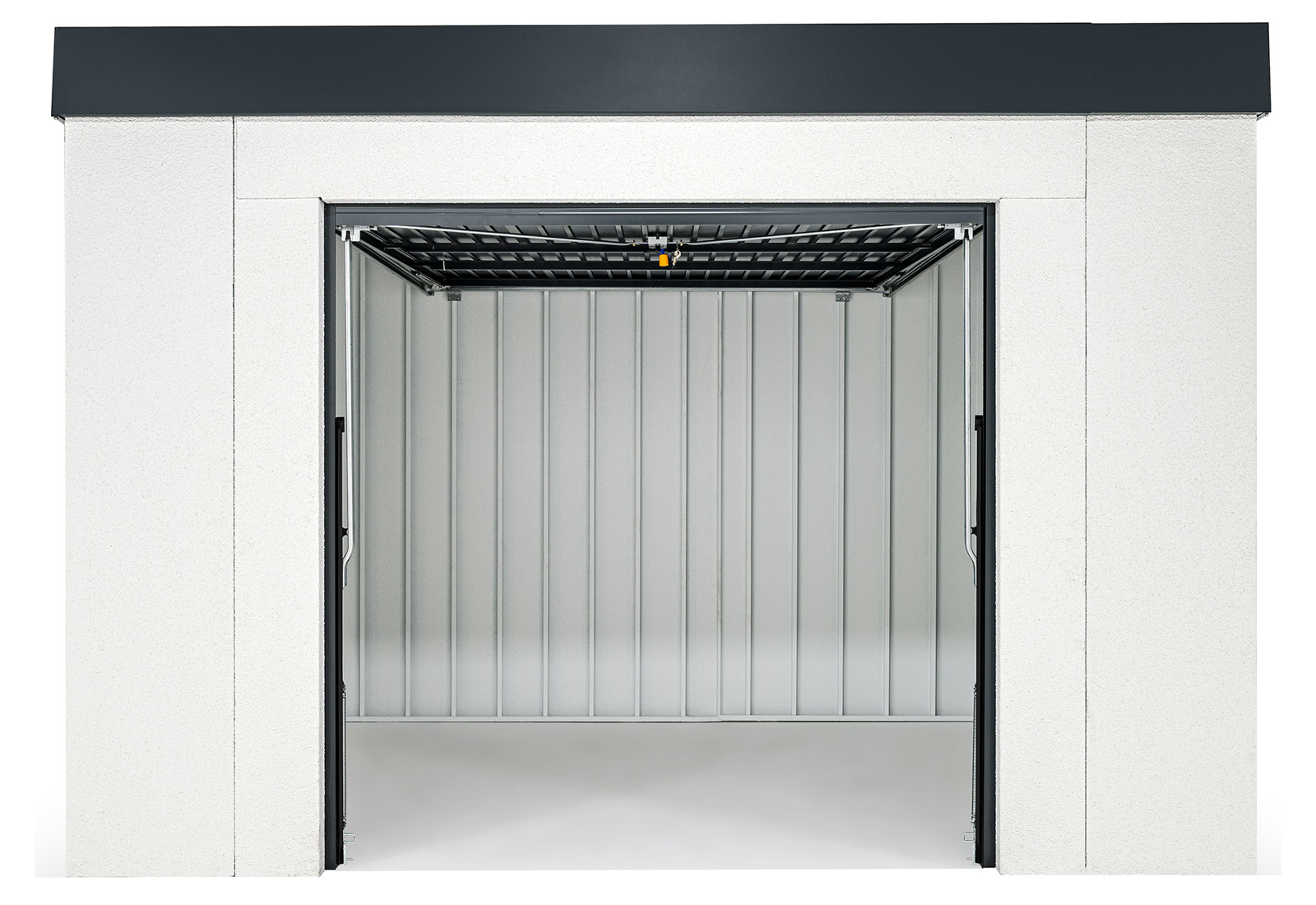Priestranný záhradný domček so špičkovými garážovými bránami Hörmann má zabudované svetlo a je možné ho napájať zo solárnych panelov. Bezpečnostná brána sa šikovne zatvára k stropu a šetrí priestor. Ultratiché otváranie a zatváranie brány je skvelým bonusom.