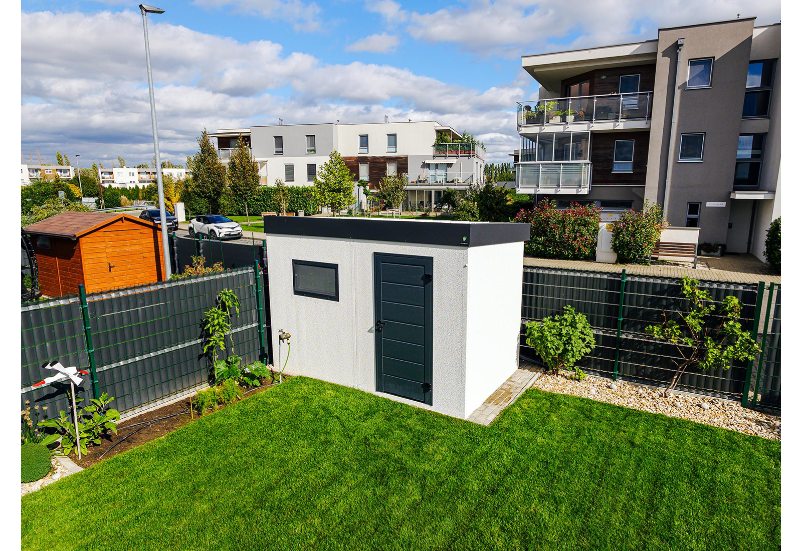 Objavte inováciu v stavebníctve – montované záhradné domčeky GARDEON® s hotovou dizajnovou omietkou od švajčiarskej značky KABE. Celoročná fasáda je samočistiaca a s ľahkosťou odoláva vode, vysokým teplotám aj všetkým rozmarom počasia. Vďaka našej unikátnej technológii má oceľová stena hrúbku iba 5 cm, čo oproti 20-centimetrovej klasickej murovanej stene šetrí priestor vo vašej záhrade aj v interiéri domčeka.