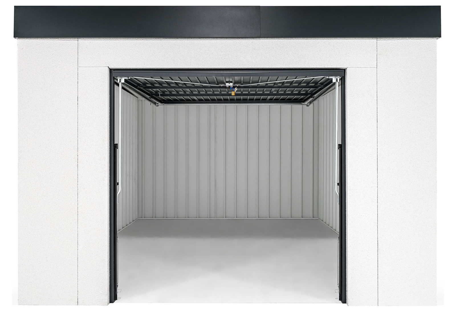 Priestranný záhradný domček so špičkovými garážovými bránami Hörmann má zabudované svetlo a je možné ho napájať zo solárnych panelov. Bezpečnostná brána sa šikovne zatvára k stropu a šetrí priestor. Ultratiché otváranie a zatváranie brány je skvelým bonusom.