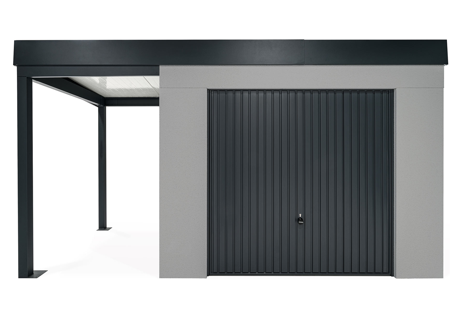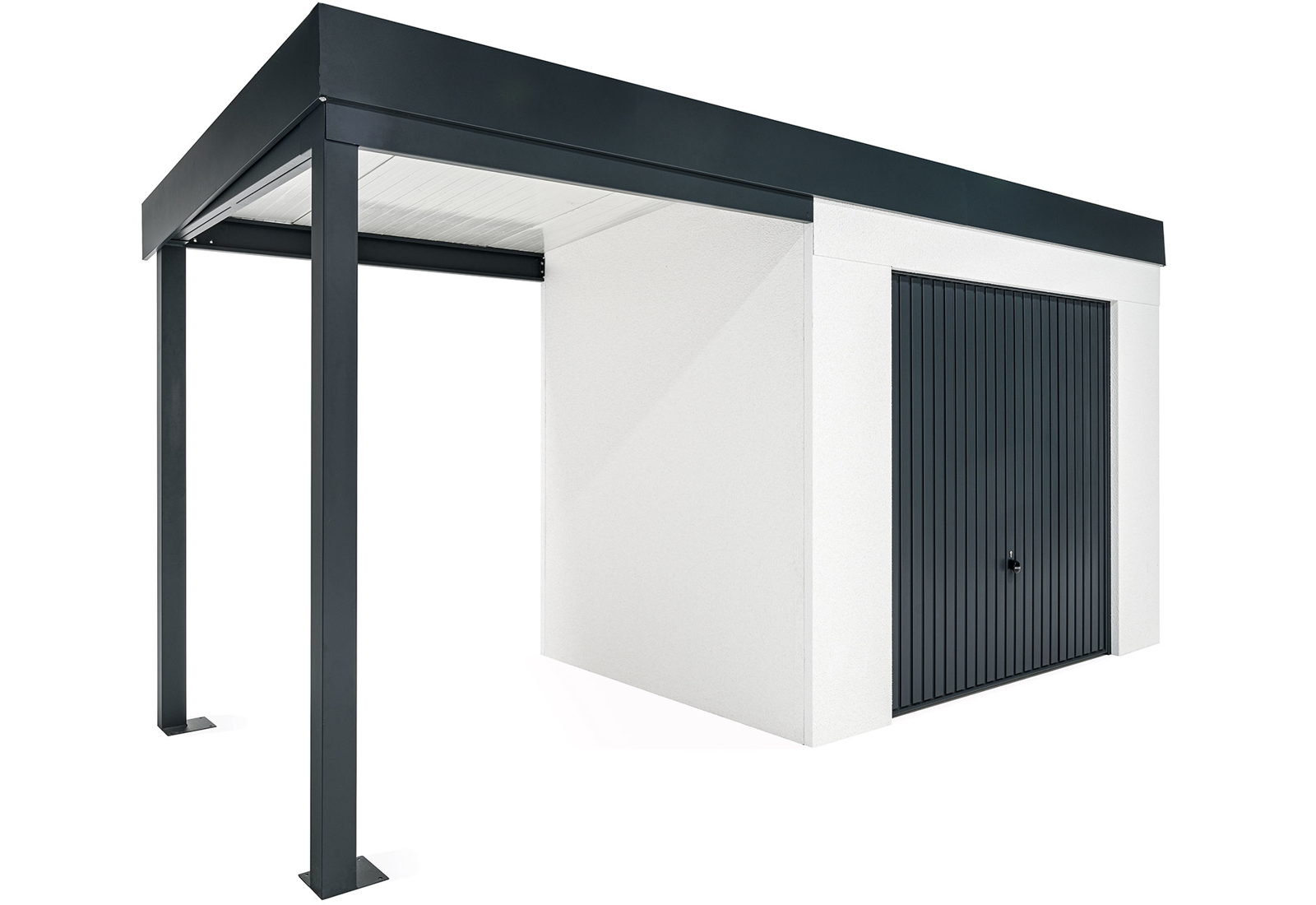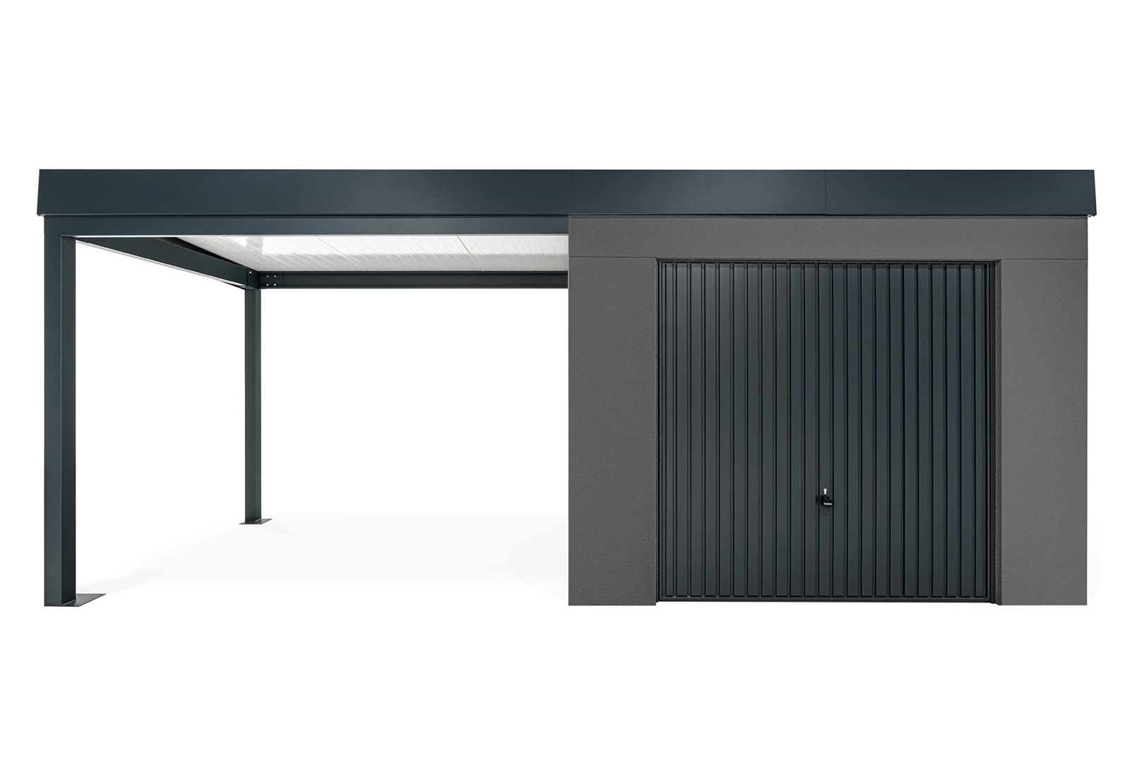 Priestranný záhradný domček so špičkovými garážovými bránami Hörmann má zabudované svetlo a je možné ho napájať zo solárnych panelov. Bezpečnostná brána sa šikovne zatvára k stropu a šetrí priestor. Ultratiché otváranie a zatváranie brány je skvelým bonusom.