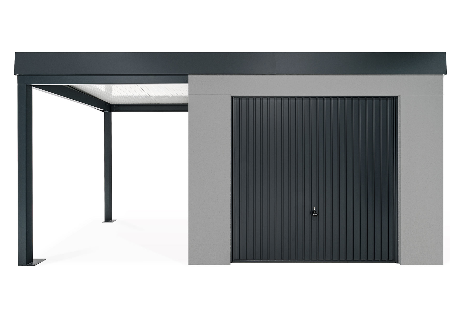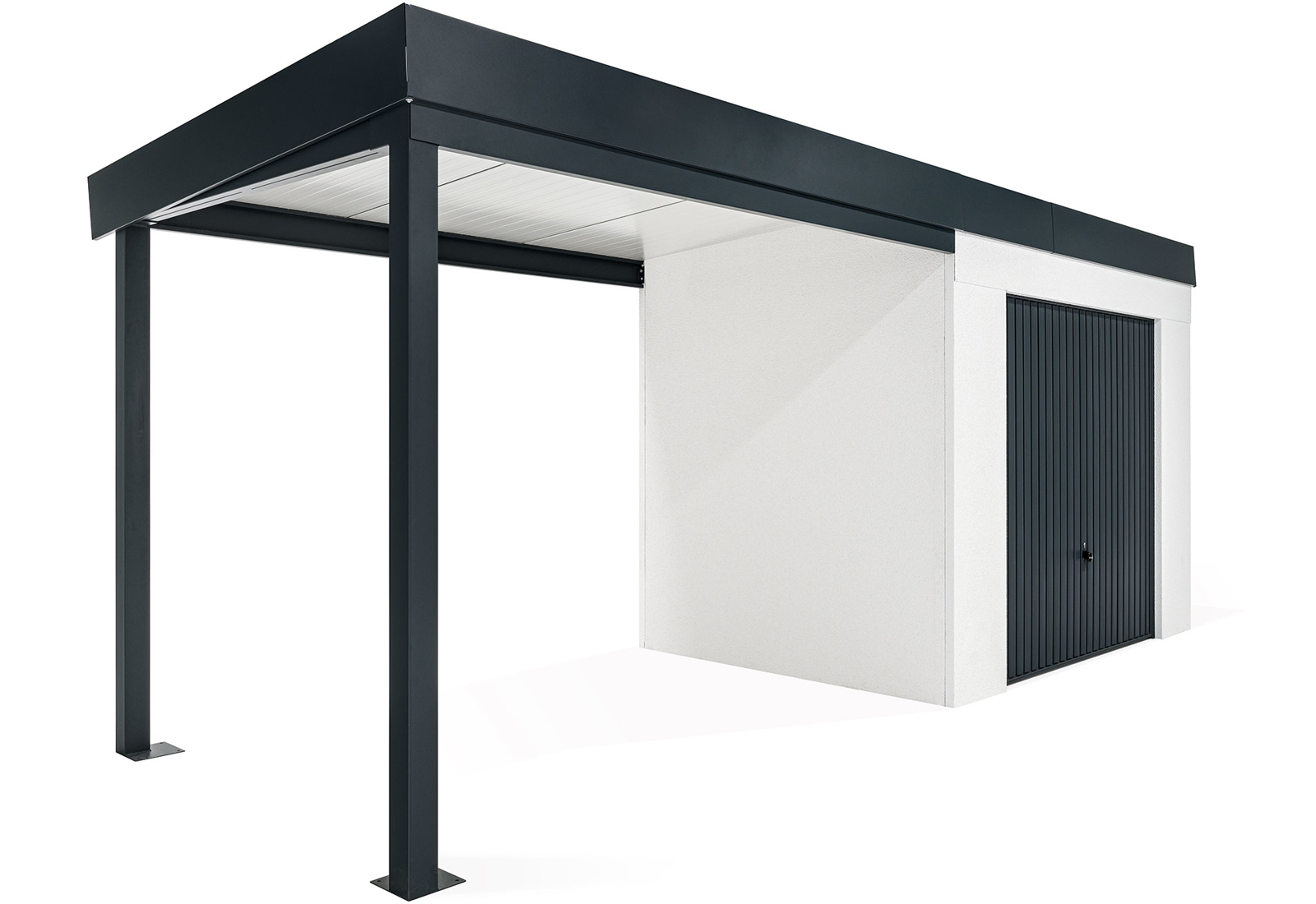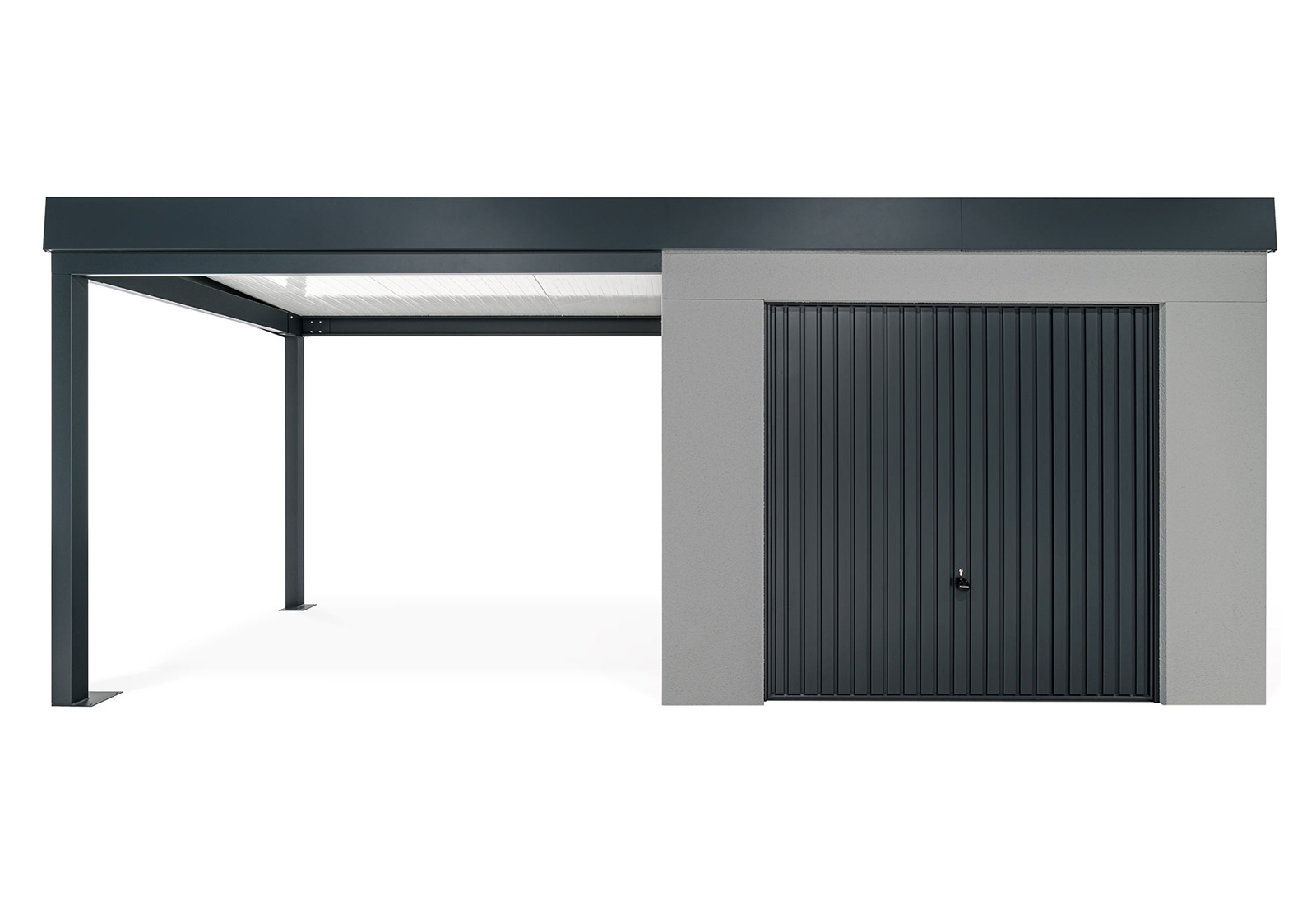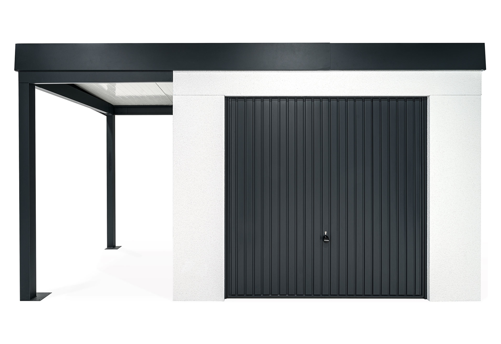 Priestranný záhradný domček so špičkovými garážovými bránami Hörmann má zabudované svetlo a je možné ho napájať zo solárnych panelov. Bezpečnostná brána sa šikovne zatvára k stropu a šetrí priestor. Ultratiché otváranie a zatváranie brány je skvelým bonusom.