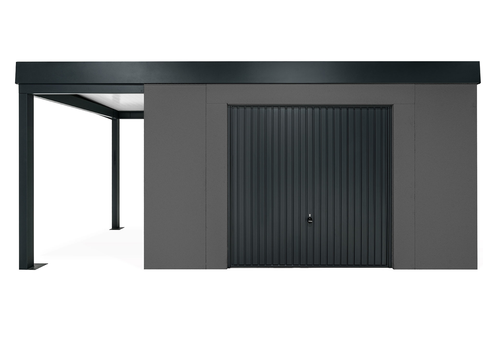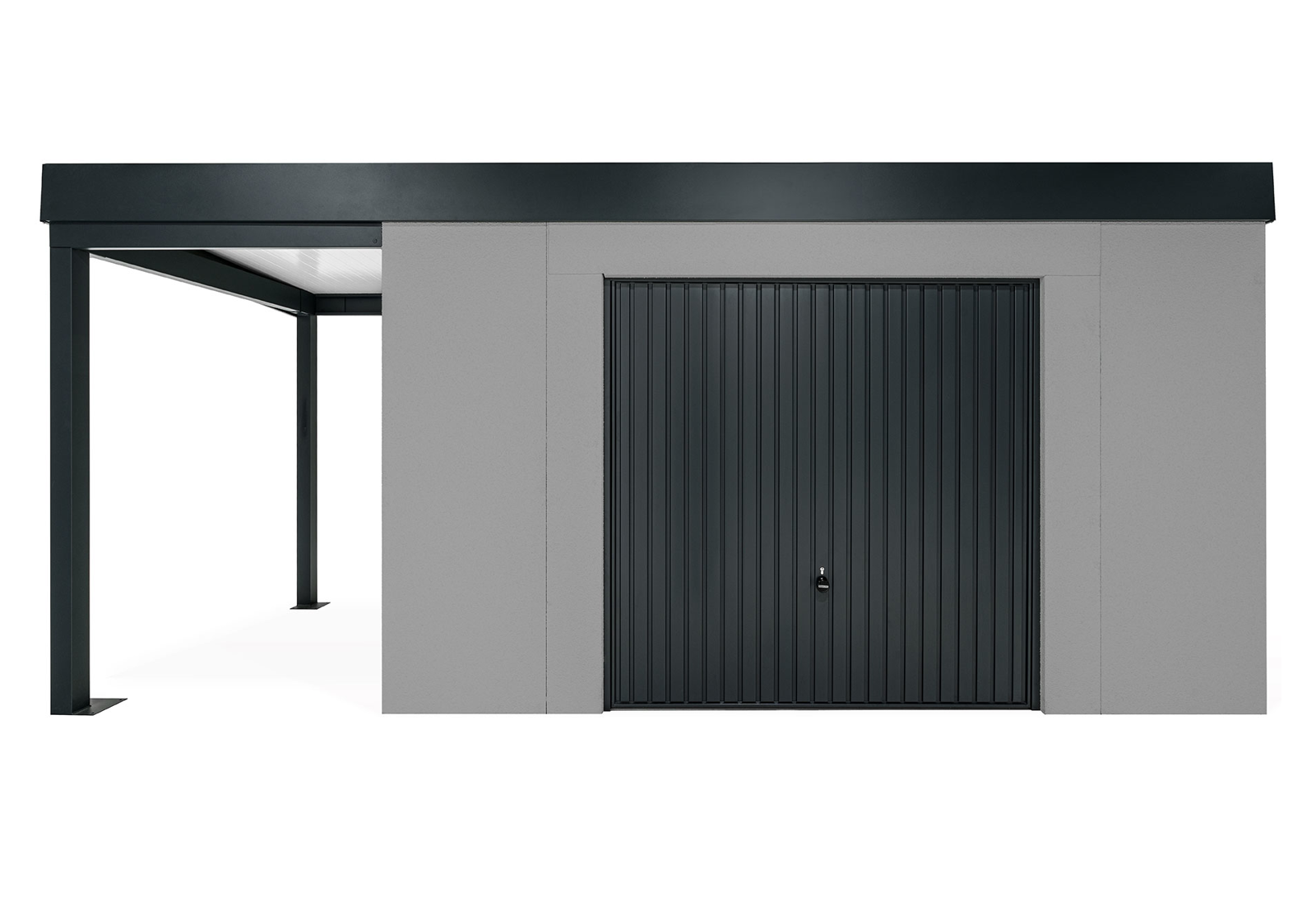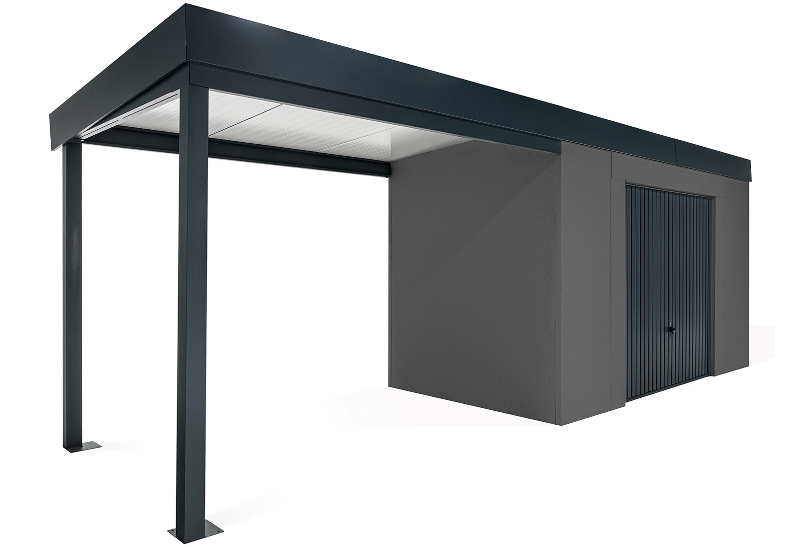 Priestranný záhradný domček so špičkovými garážovými bránami Hörmann má zabudované svetlo a je možné ho napájať zo solárnych panelov. Bezpečnostná brána sa šikovne zatvára k stropu a šetrí priestor. Ultratiché otváranie a zatváranie brány je skvelým bonusom.