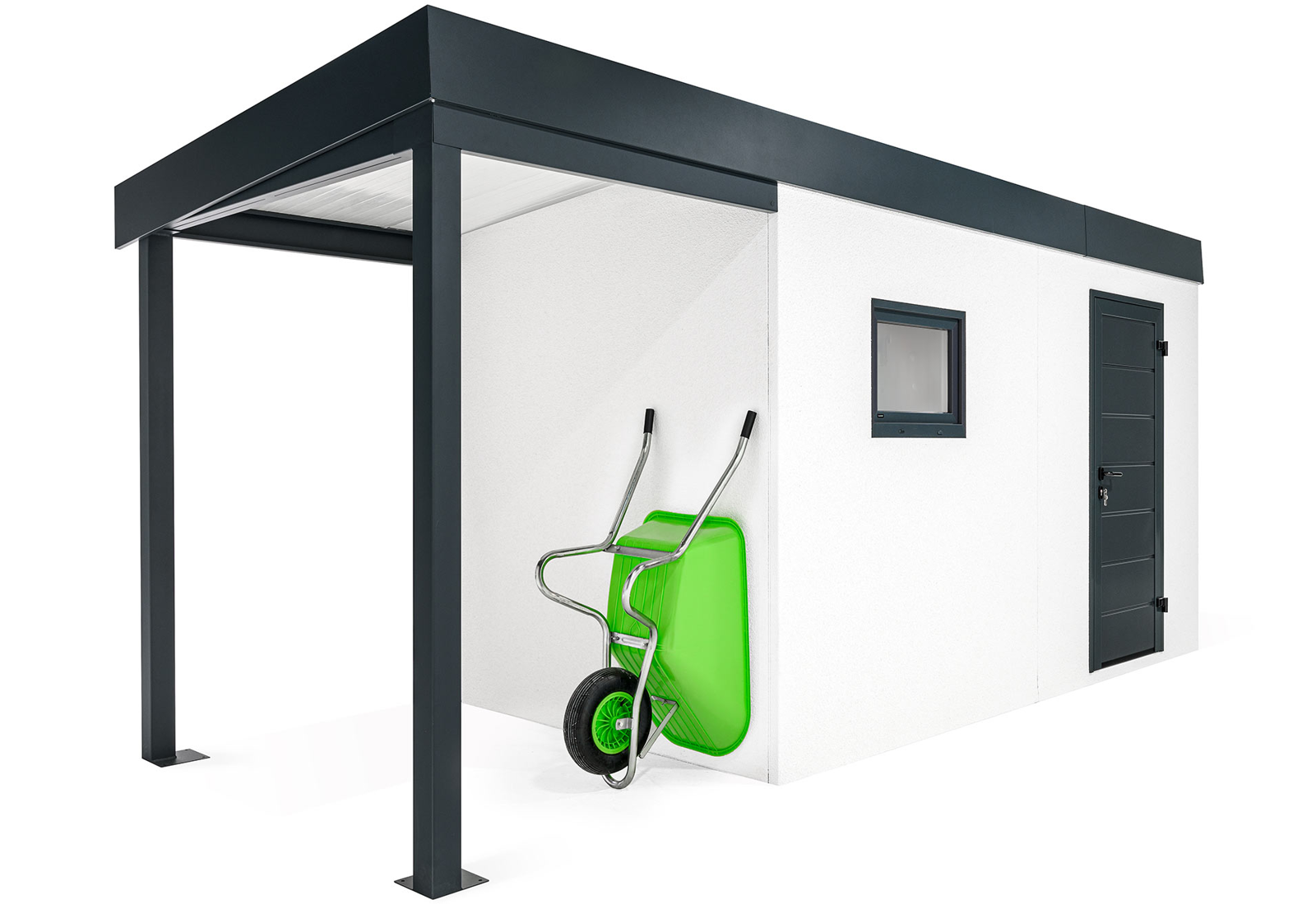 Objavte inováciu v stavebníctve – montované záhradné domčeky GARDEON® s hotovou dizajnovou omietkou od švajčiarskej značky KABE. Celoročná fasáda je samočistiaca a s ľahkosťou odoláva vode, vysokým teplotám aj všetkým rozmarom počasia. Vďaka našej unikátnej technológii má oceľová stena hrúbku iba 5 cm, čo oproti 20-centimetrovej klasickej murovanej stene šetrí priestor vo vašej záhrade aj v interiéri domčeka.
