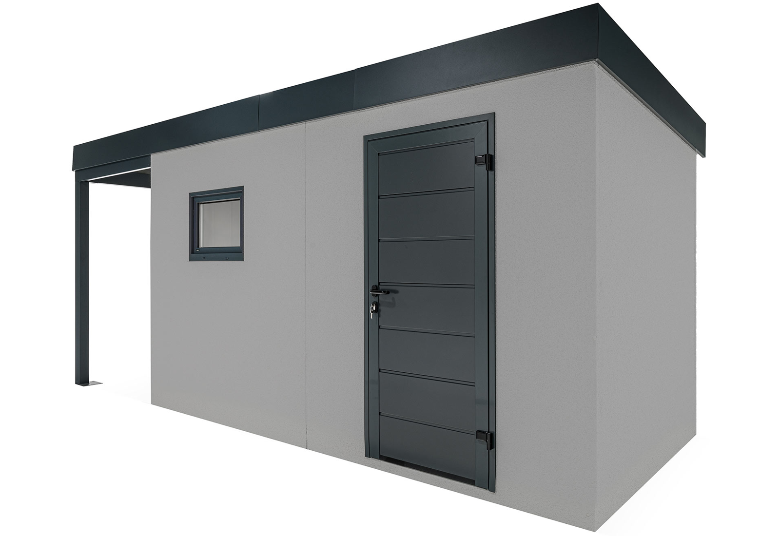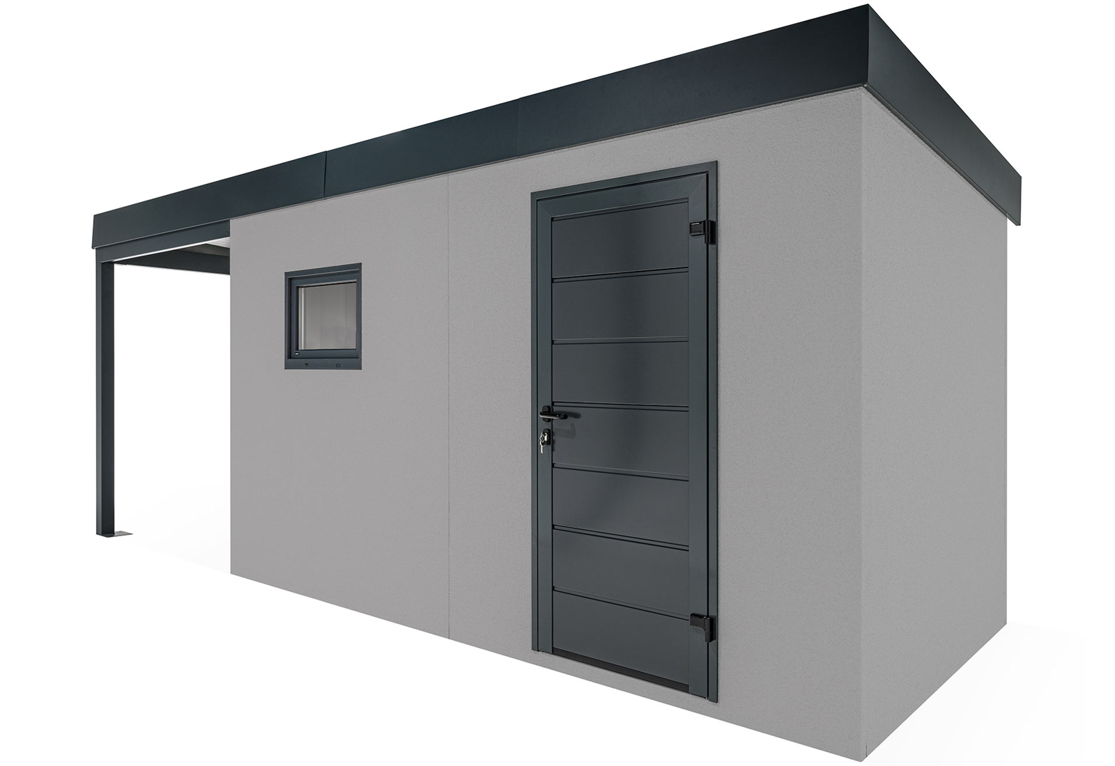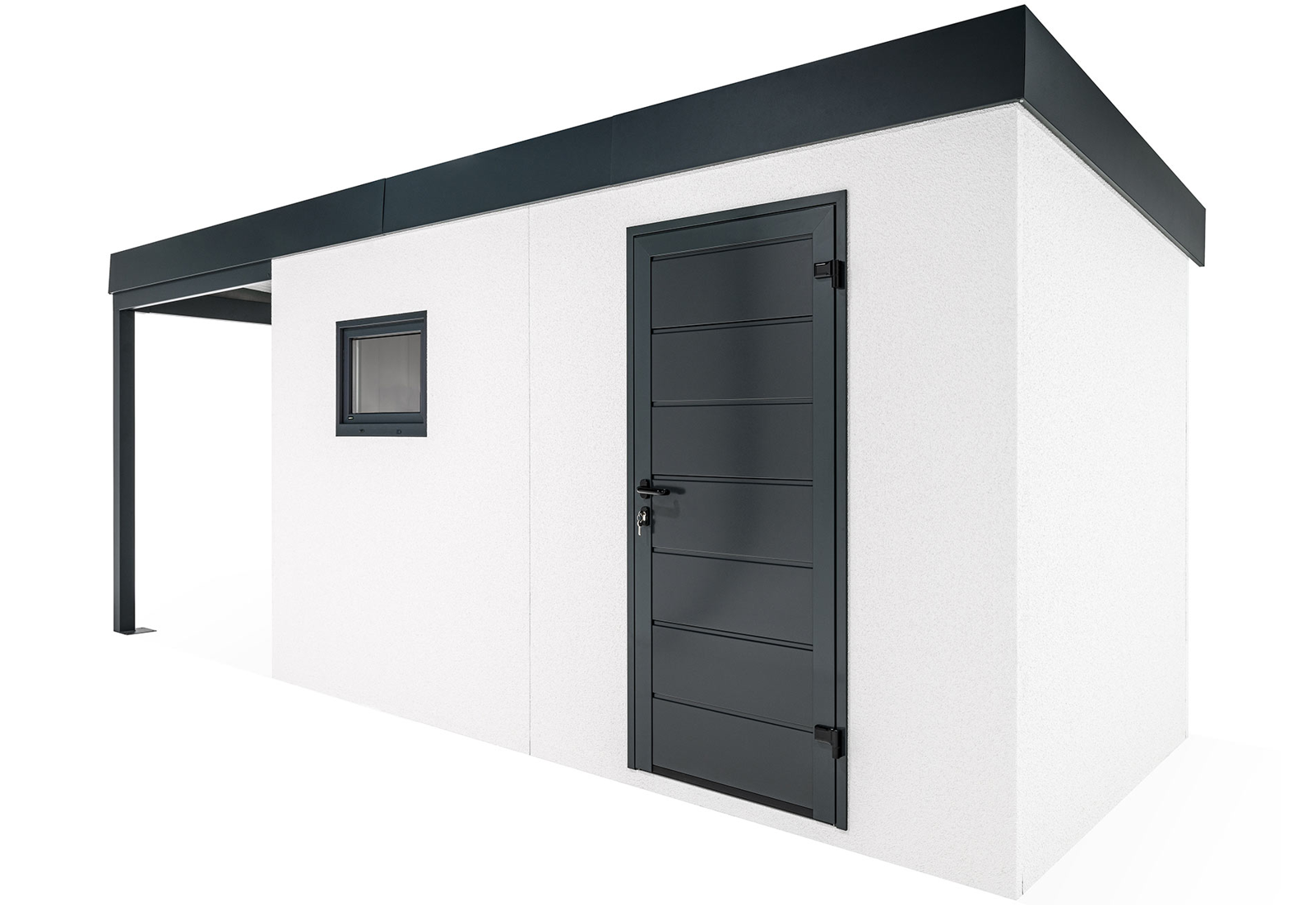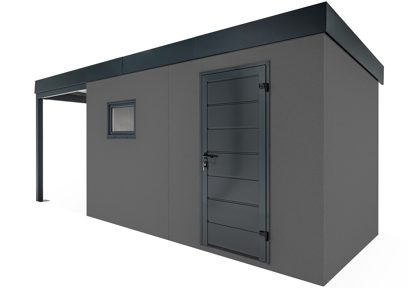 GARDEON® Záhradný domček 4 m x 2 m s dverami Hörmann, oknom a ľavým prístreškom | Gardeon