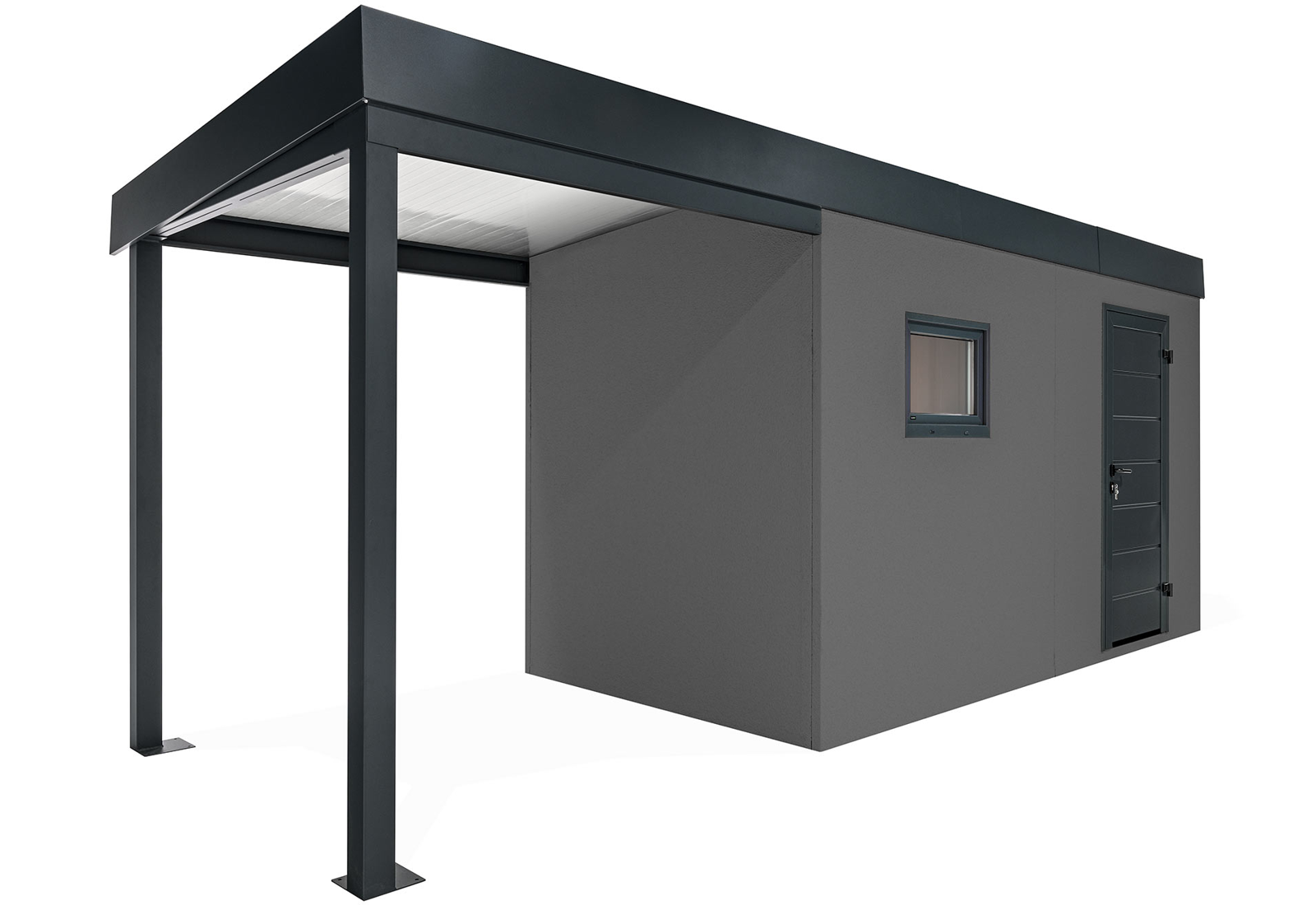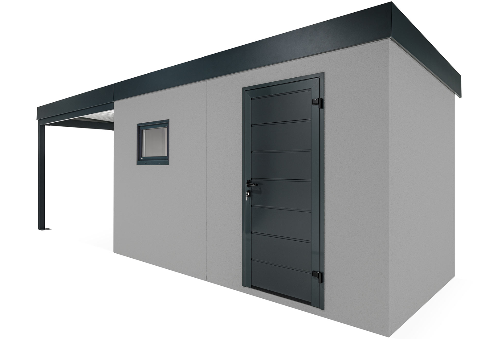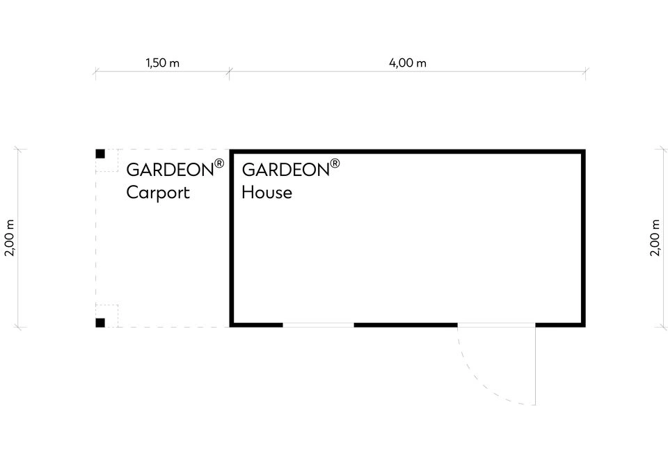 GARDEON® Záhradný domček 4 m x 2 m s dverami Hörmann, oknom a ľavým prístreškom | Gardeon