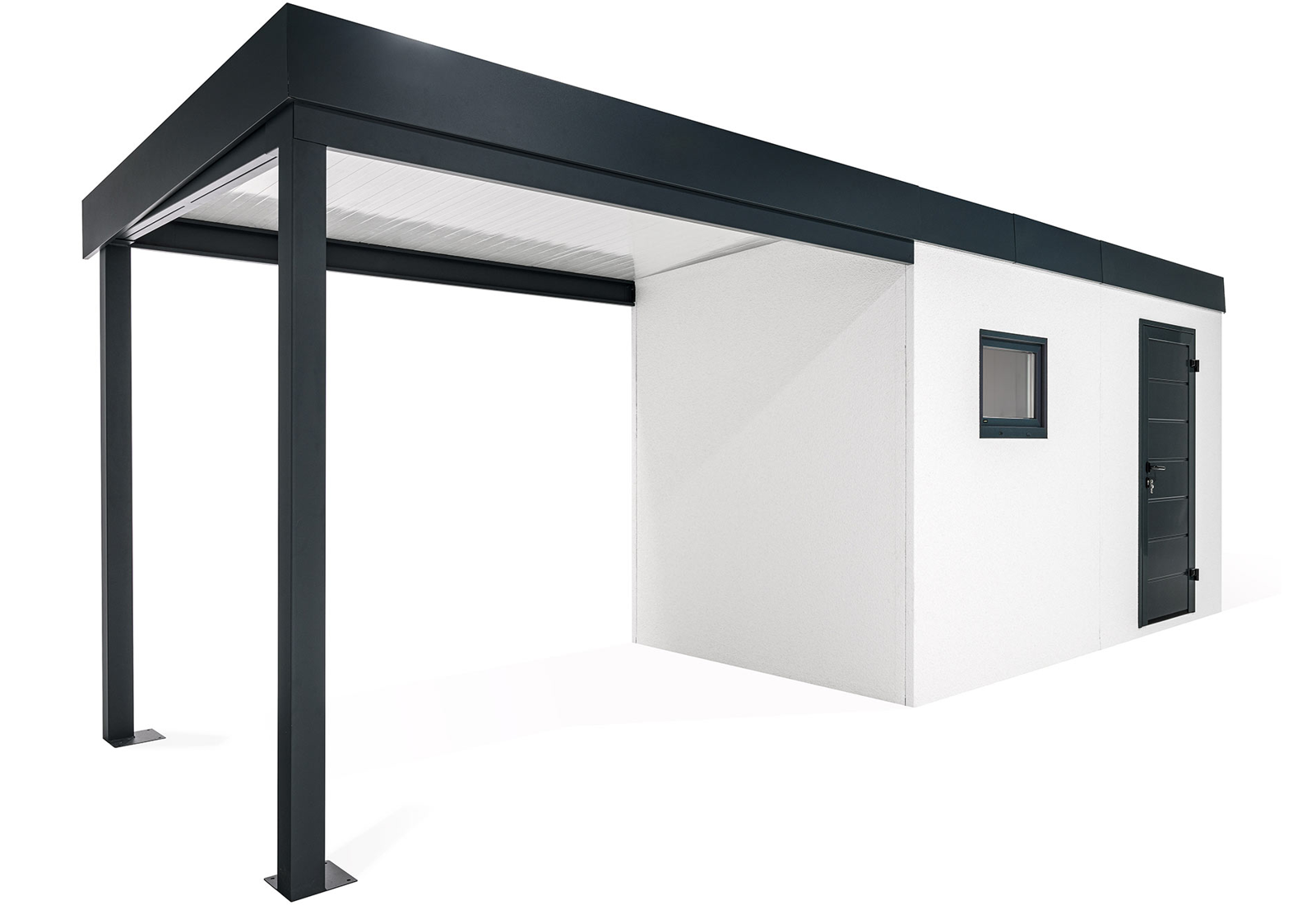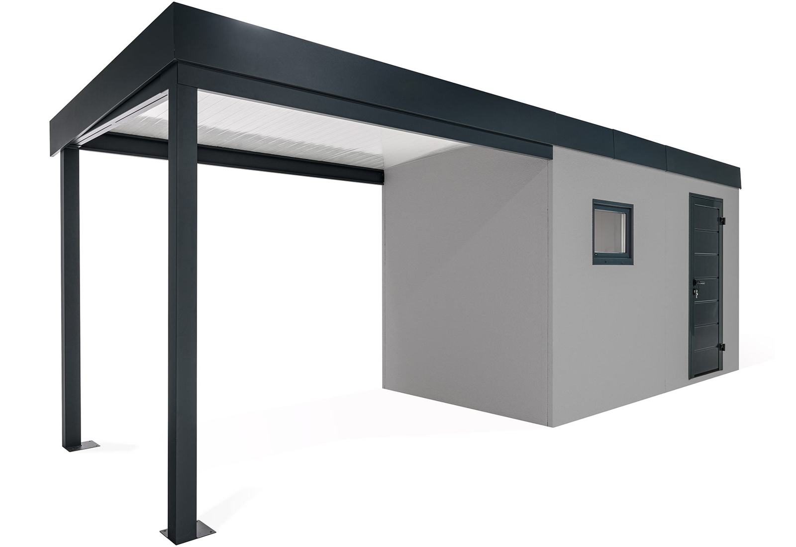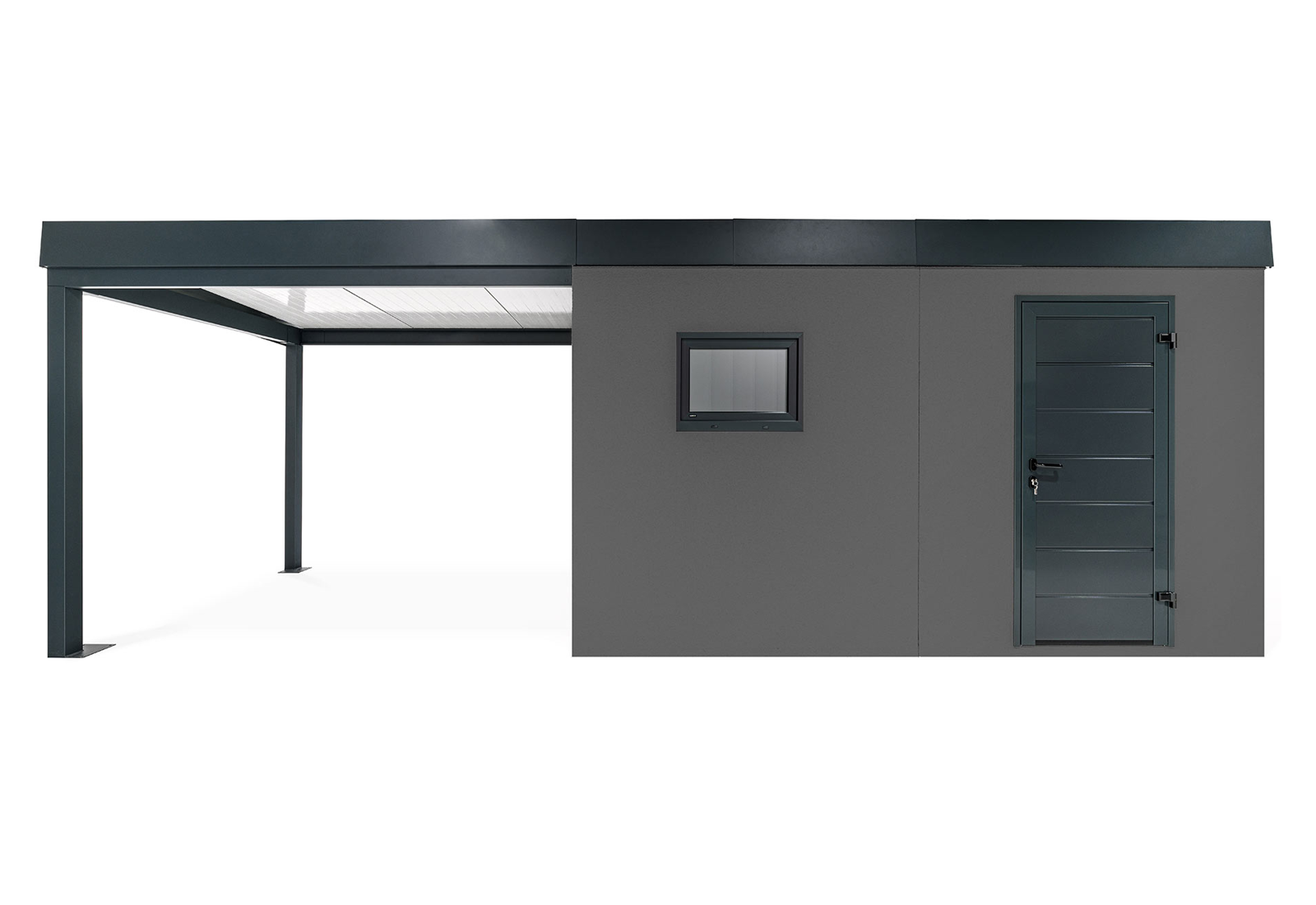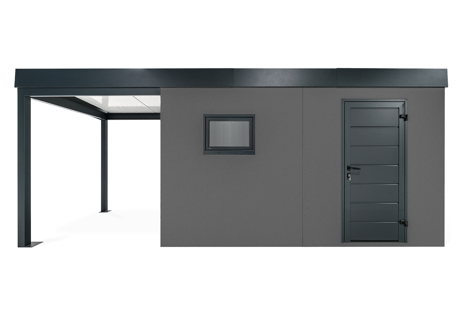 GARDEON® Záhradný domček 4 m x 2 m s dverami Hörmann, oknom a ľavým prístreškom | Gardeon