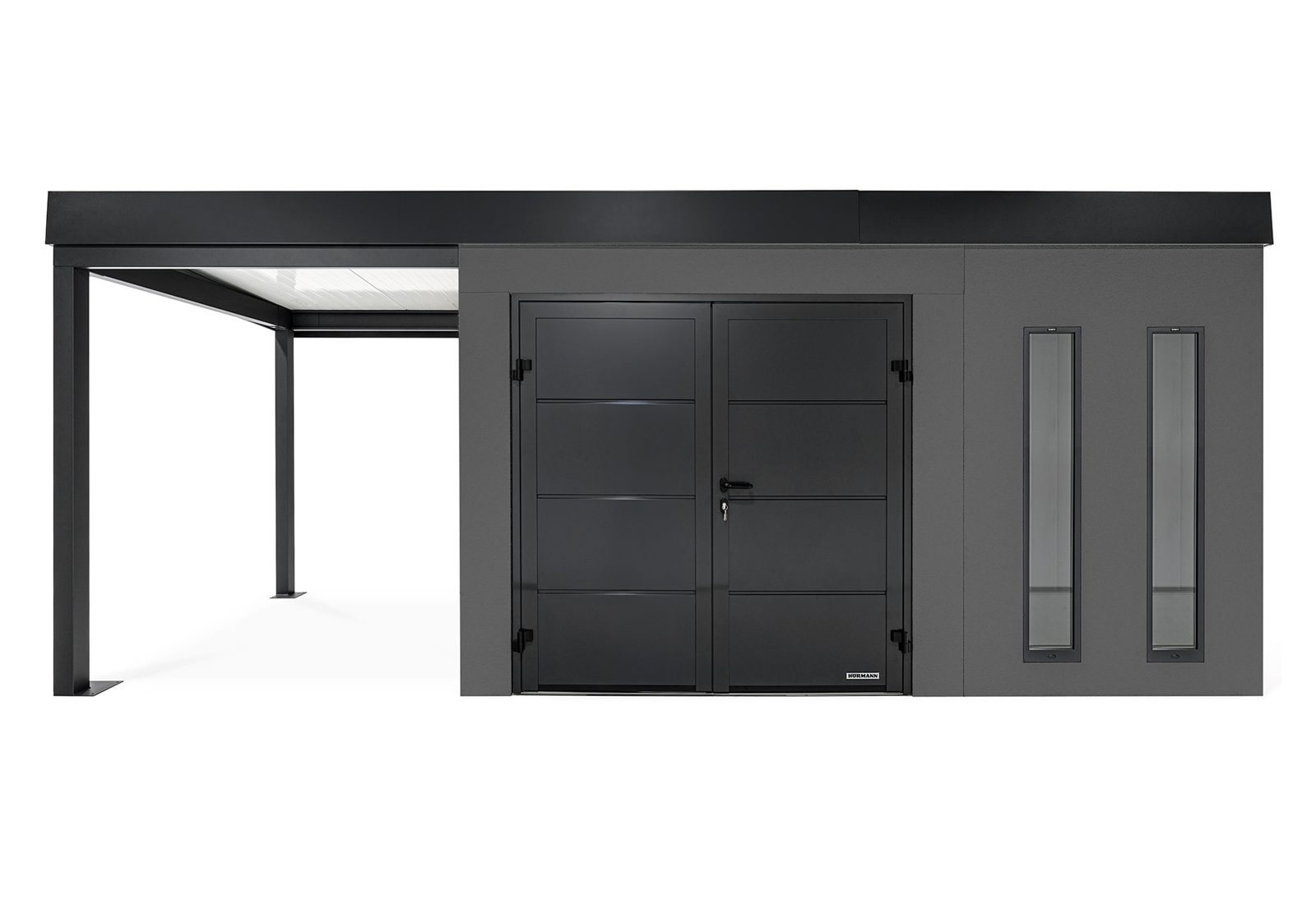 Oceníte dva spôsoby, ako elegantne vstúpiť do záhradného domčeka. Vďaka luxusným a bezpečným dvojkrídlovým dverám môžete pri nepriaznivom počasí vchádzať len jedným krídlom a pri parkovaní väčšej záhradnej techniky alebo štvorkolky prechádzať ako králi.