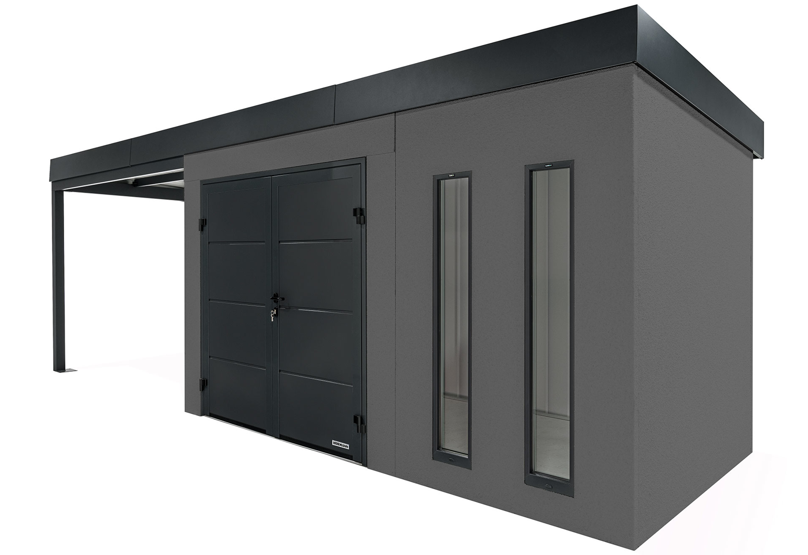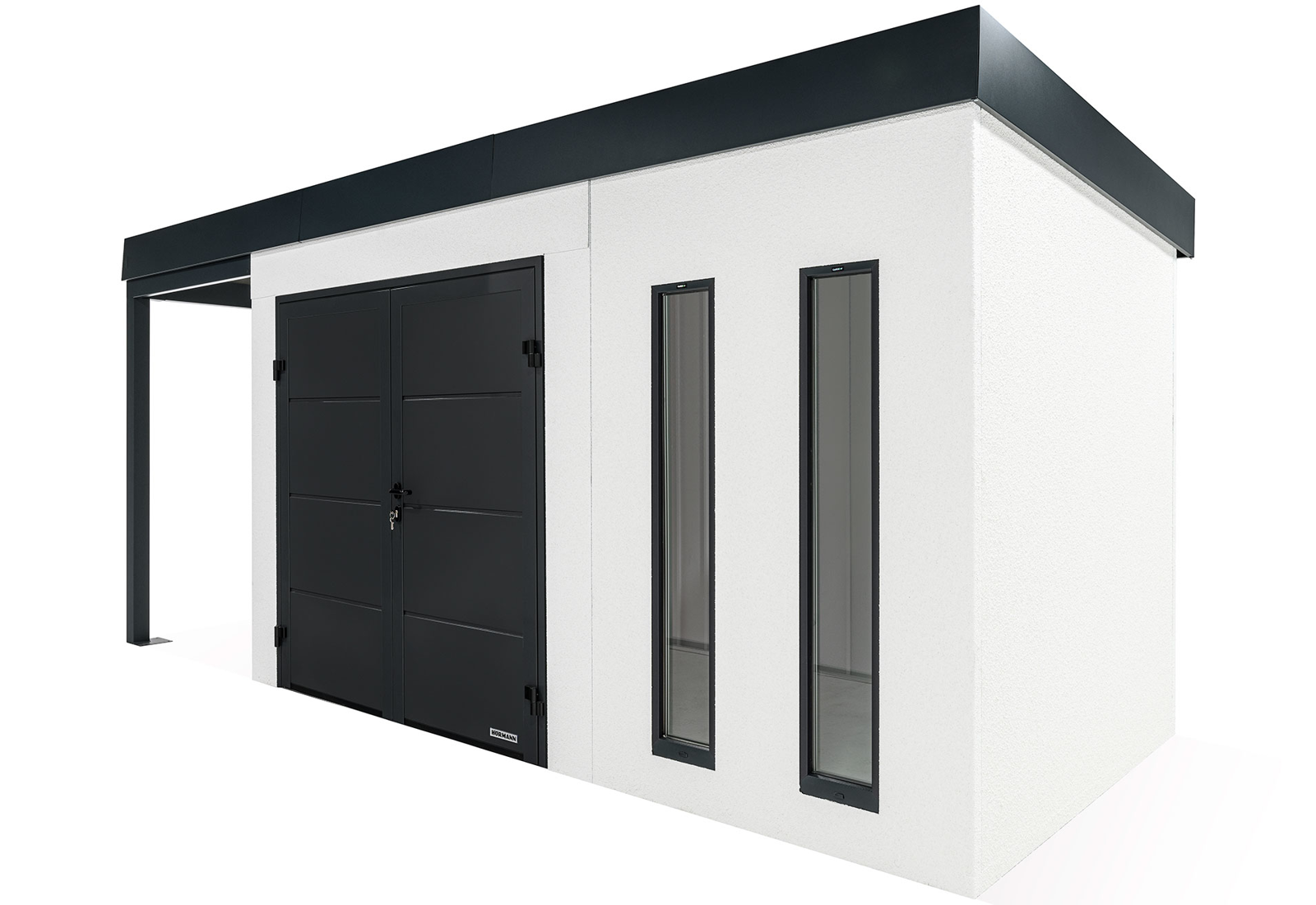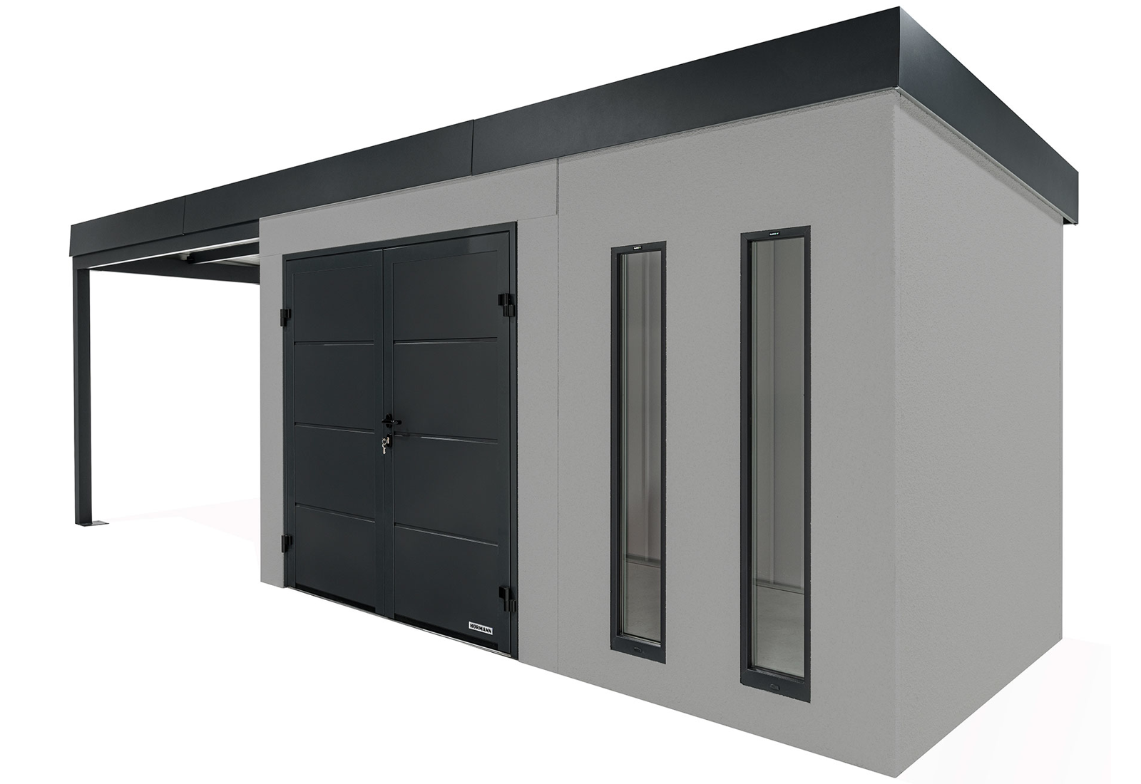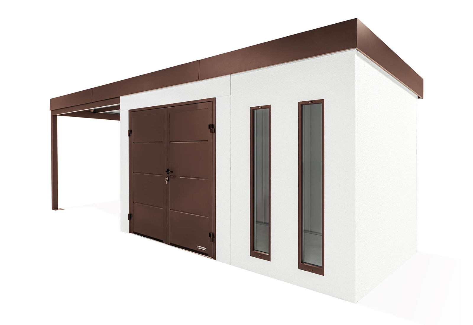 Objavte inováciu v stavebníctve – montované záhradné domčeky GARDEON® s hotovou dizajnovou omietkou od švajčiarskej značky KABE. Celoročná fasáda je samočistiaca a s ľahkosťou odoláva vode, vysokým teplotám aj všetkým rozmarom počasia. Vďaka našej unikátnej technológii má oceľová stena hrúbku iba 5 cm, čo oproti 20-centimetrovej klasickej murovanej stene šetrí priestor vo vašej záhrade aj v interiéri domčeka.