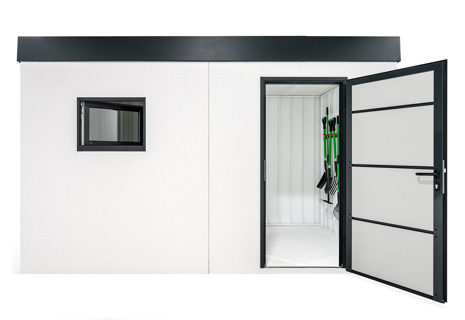 Objavte inováciu v stavebníctve – montované záhradné domčeky GARDEON® s hotovou dizajnovou omietkou od švajčiarskej značky KABE. Celoročná fasáda je samočistiaca a s ľahkosťou odoláva vode, vysokým teplotám aj všetkým rozmarom počasia. Vďaka našej unikátnej technológii má oceľová stena hrúbku iba 5 cm, čo oproti 20-centimetrovej klasickej murovanej stene šetrí priestor vo vašej záhrade aj v interiéri domčeka.