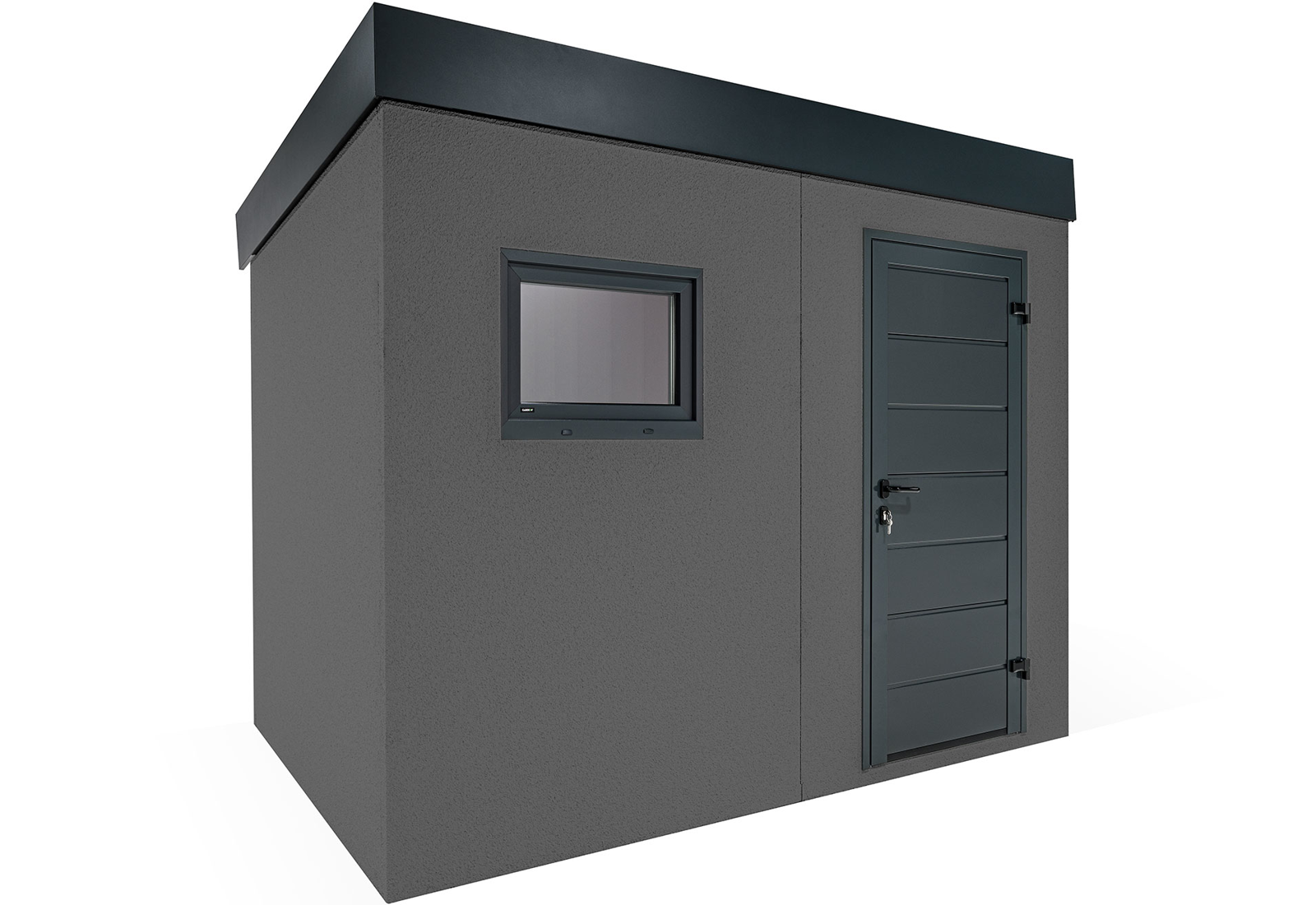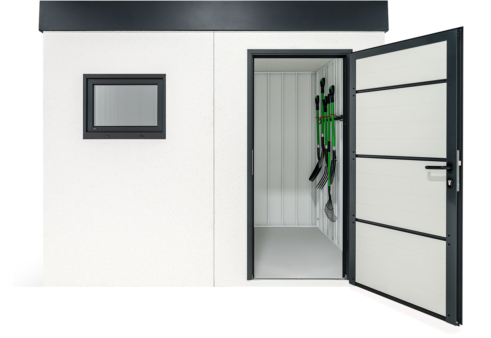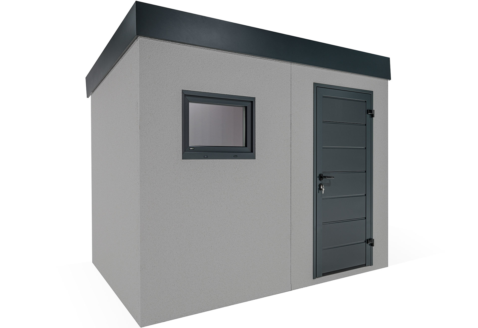 Objavte inováciu v stavebníctve – montované záhradné domčeky GARDEON® s hotovou dizajnovou omietkou od švajčiarskej značky KABE. Celoročná fasáda je samočistiaca a s ľahkosťou odoláva vode, vysokým teplotám aj všetkým rozmarom počasia. Vďaka našej unikátnej technológii má oceľová stena hrúbku iba 5 cm, čo oproti 20-centimetrovej klasickej murovanej stene šetrí priestor vo vašej záhrade aj v interiéri domčeka.