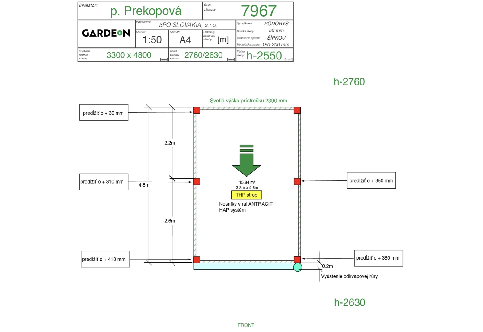 • Strešné nosníky vo farbe RAL